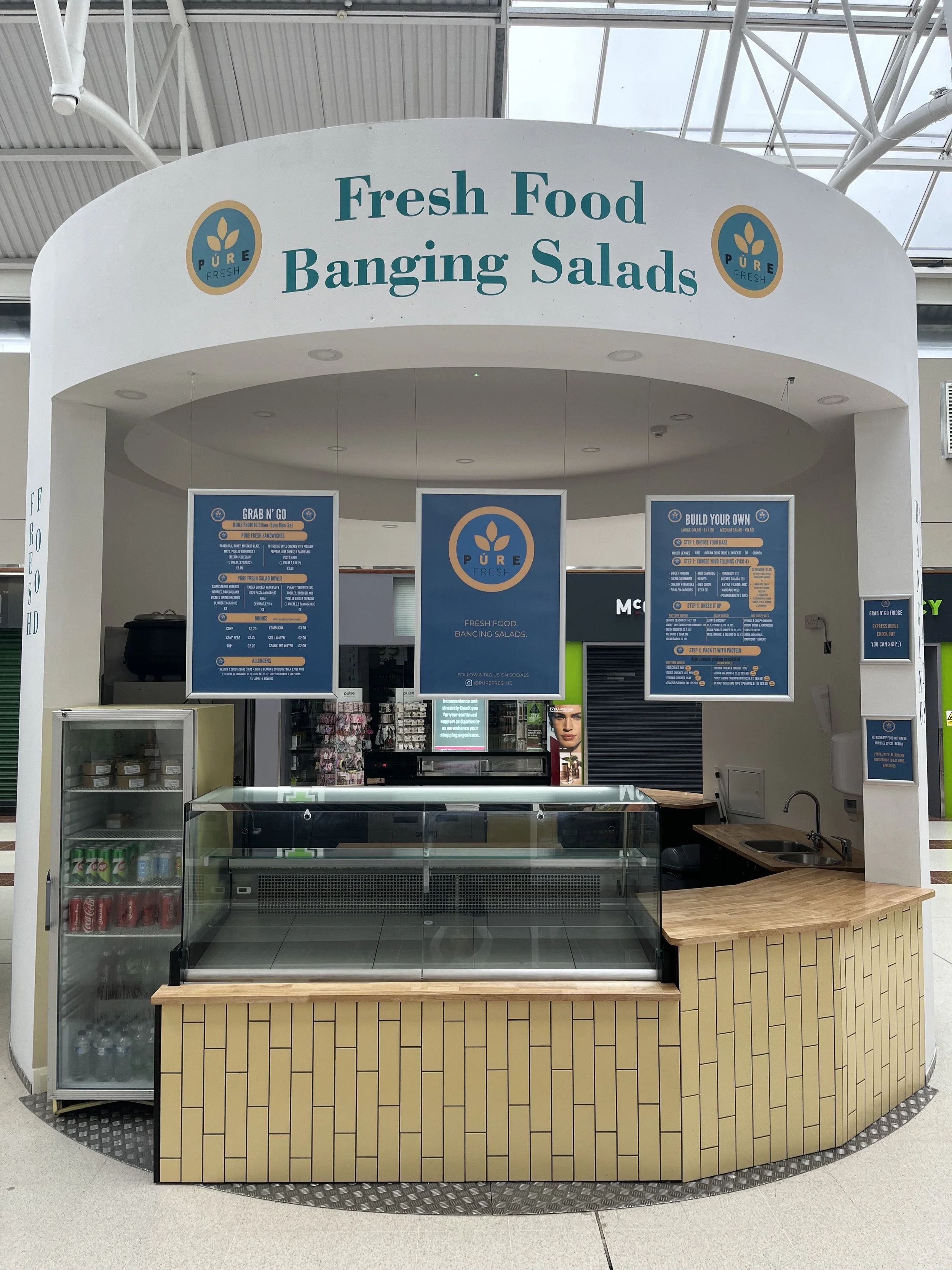 Brand new to Castletroy, Púre Fresh is a vibrant gourmet salad bar serving up fresh, feel good food from one of our on-site kiosks.